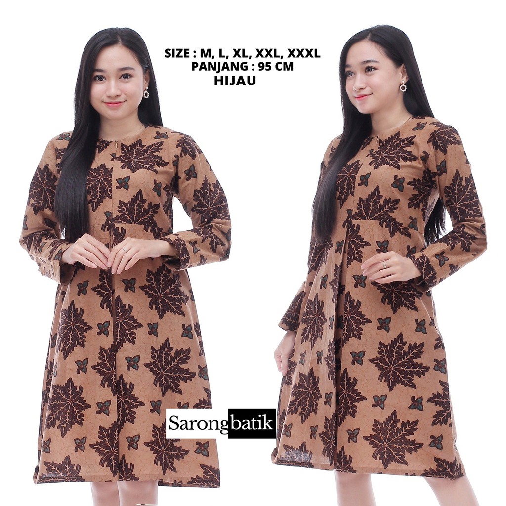 Atasan Dress Batik Wanita Setaman DSC05884 dengan harga murah menggunakan bahan katun prima. Varian warna motif hijau dan motif merah. Tunik/dress batik lengan panjang 50 cm - 52 cm cocok untuk digunakan saat santai ataupun untuk baju kerja di kantor.